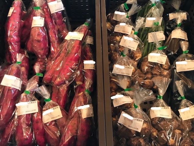 空芯菜やさつまいも、里芋などの旬のお野菜を入荷しております!