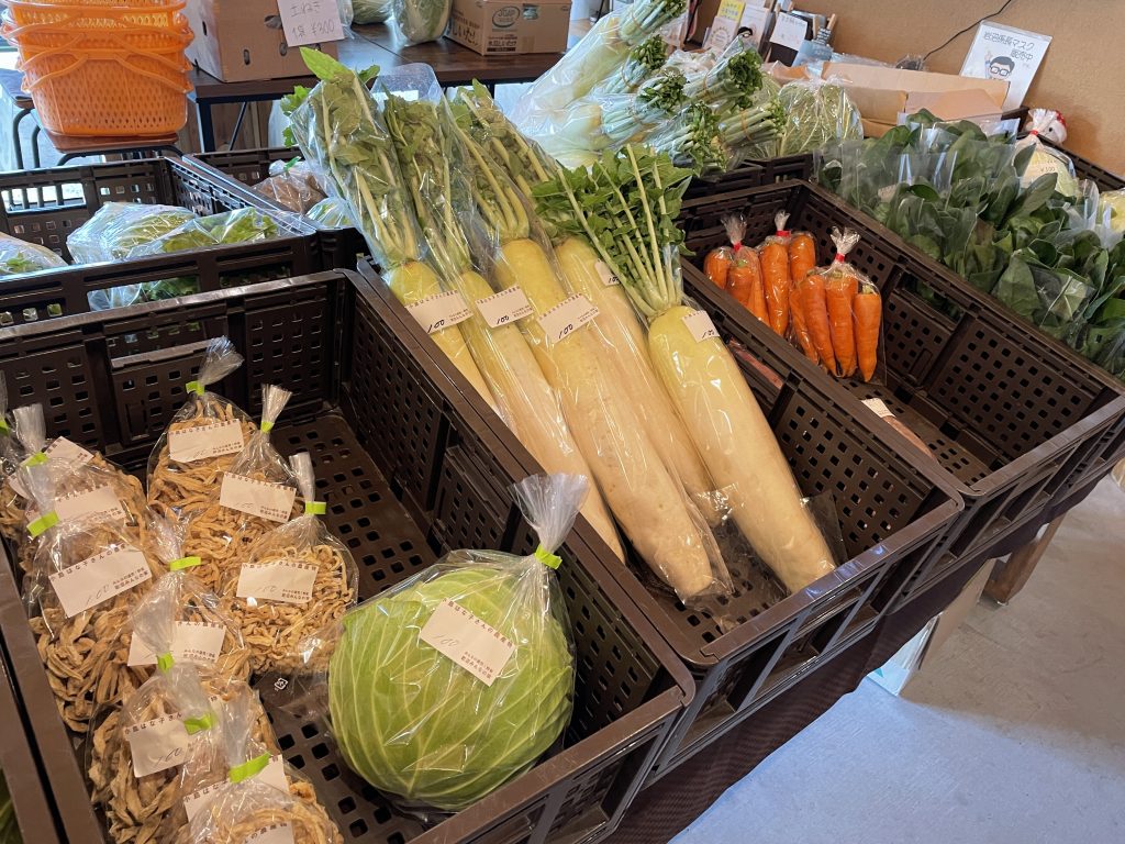 本日もほうれん草、キャベツ、里芋、ねぎ、にんじん、サニーレタス、カリフラワー、ブロッコリー、レタス、大根、白菜、チンゲン菜などの採れたて野菜が沢山入ってきております。
