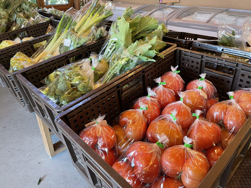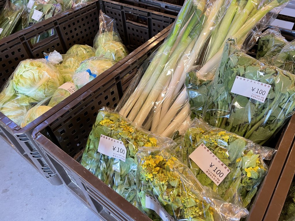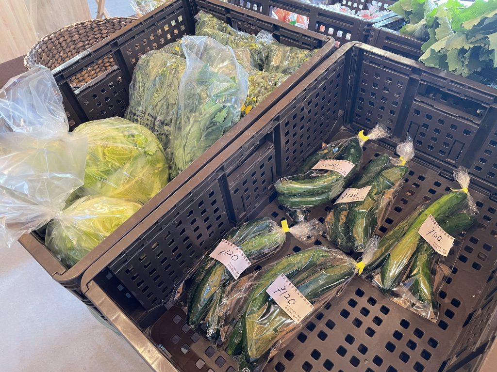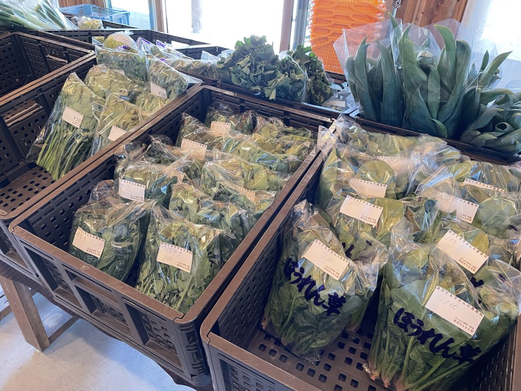 本日もトマト、きゅうり、にら、キャベツ、ほうれん草、かき菜、つぼみ菜、ゆき菜、ねぎ、かぶ、ブロッコリーなどの採れたて野菜が入ってきております!