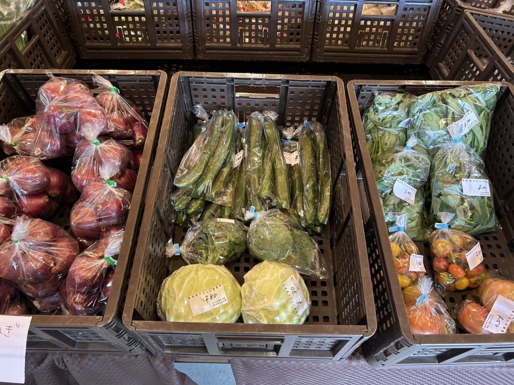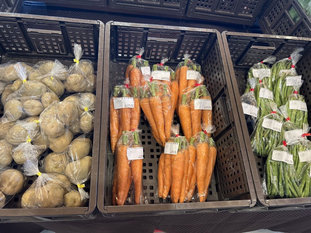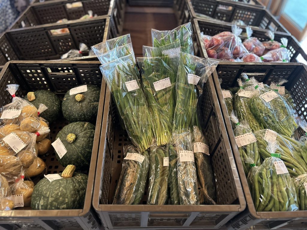 本日春菊、玉ねぎ、きゅうり、いんげん、トマト、ニラ、じゃがいもなどの採れたて野菜が入ってきております。