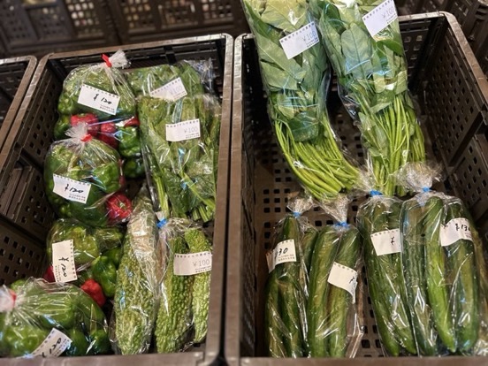 本日里芋、ねぎ、さつまいも、かぼちゃ、にんにく、空芯菜、ピーマン、なすなどの採れたて野菜が入ってきております。