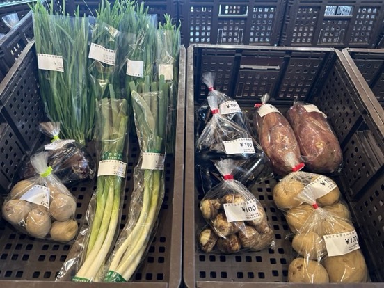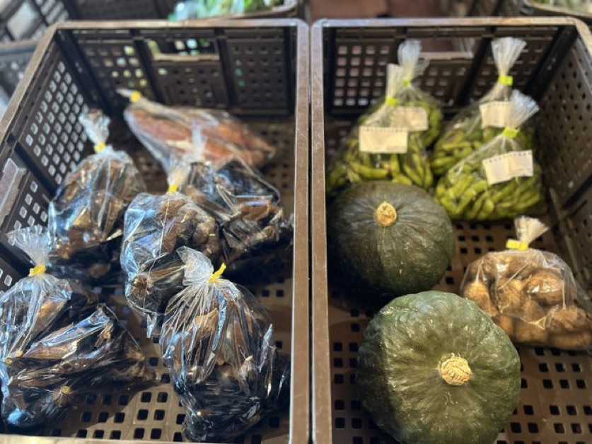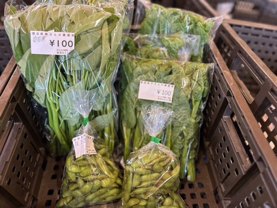 本日ニラ、ツルムラサキ、さつまいも、かぼちゃ、空芯菜、ネギ、きゅうり、ピーマン、なすなどの採れたて野菜が入ってきております。