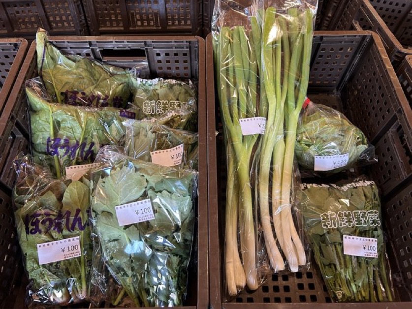 本日はつぼみ菜、きゅうり、ねぎ、山芋、ほうれん草、ブロッコリーなどの採れたて野菜が入ってきております。