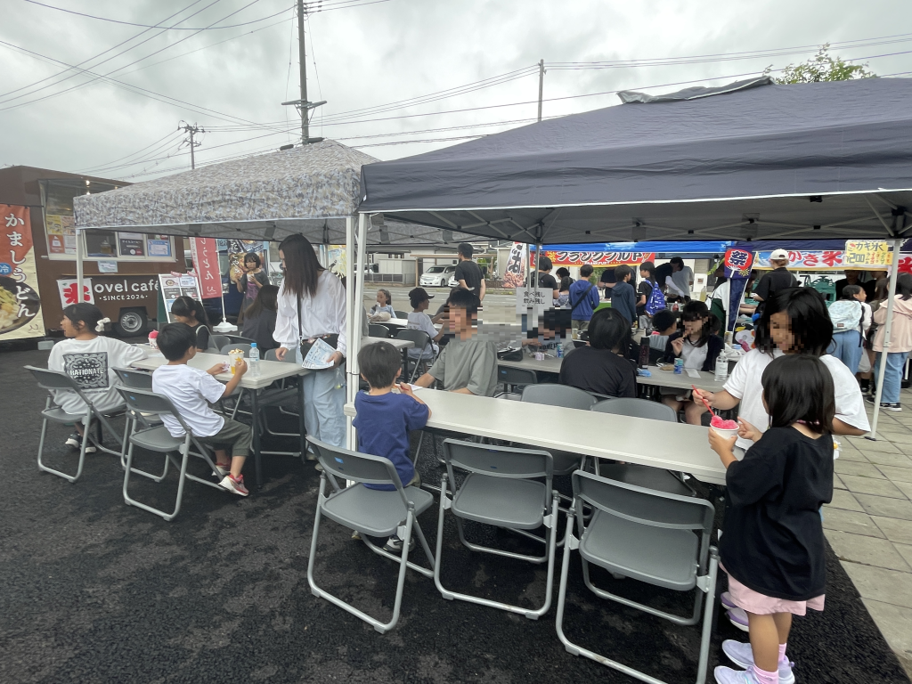 亀たろさんの美味しい焼き菓子やおつまみ、キッチンカーのかましうどんやたこ焼き、ソフトクリームも大人気でした。