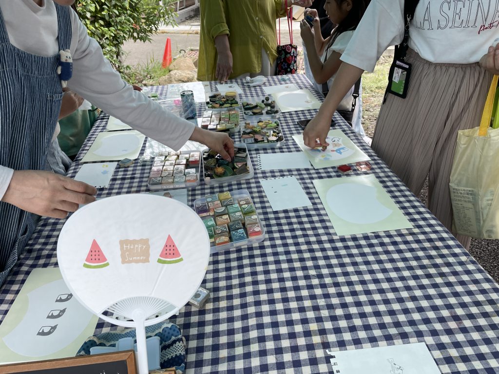 ハンコで好きな模様を描けるうちわ作りと、キーホルダーをつくれるワークショップも開催!