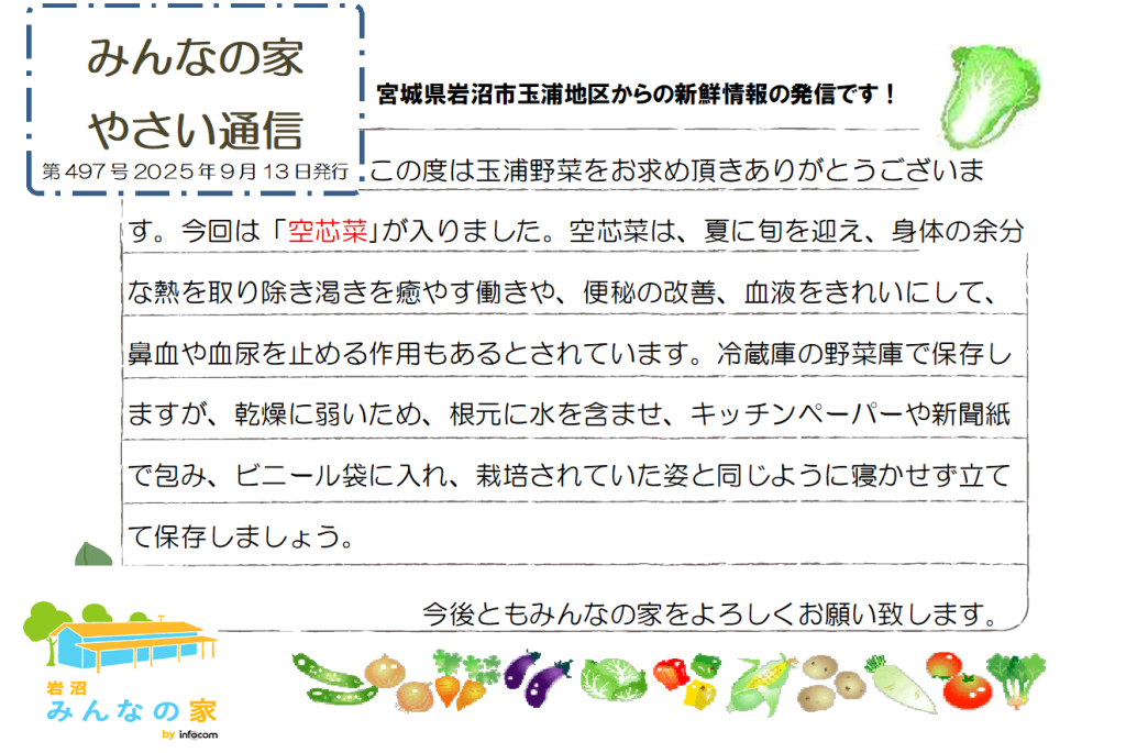 この度はみんなの家の直売野菜をお求めいただきましてありがとうございます。