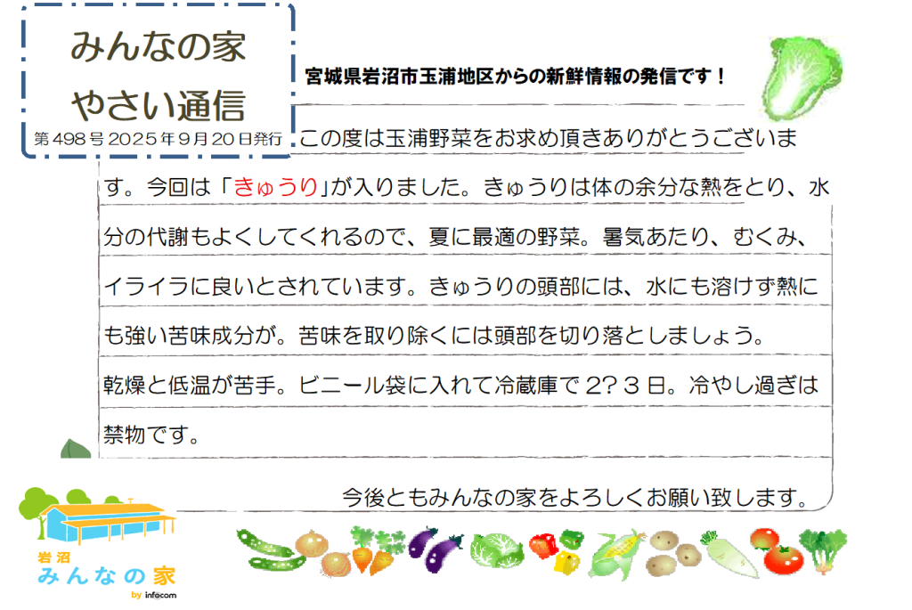 この度はみんなの家の直売野菜をお求めいただきましてありがとうございます。
