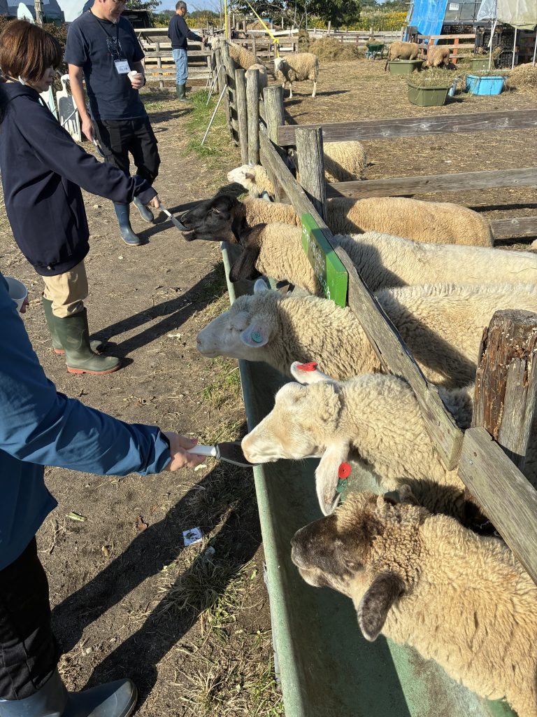 さつまいもを大量に堀りだした後はひつじ達への餌やりを行いました。