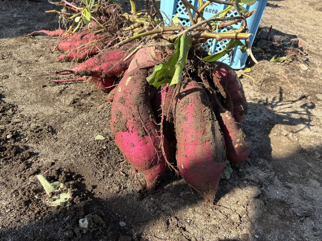 ”紅はるか”、”紅あずま”、”鳴門金時”の3種類のさつまいもが植えられています。