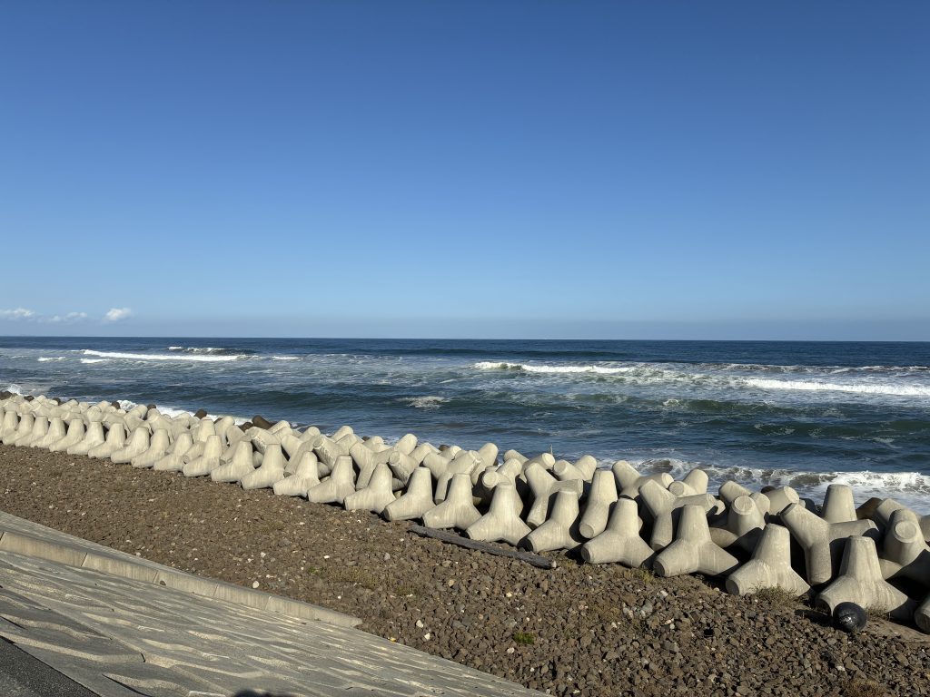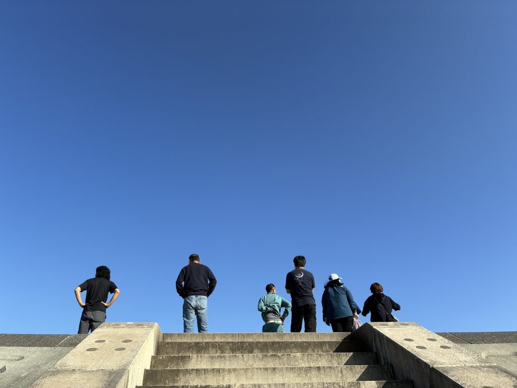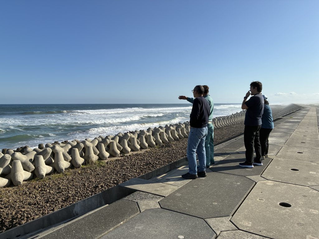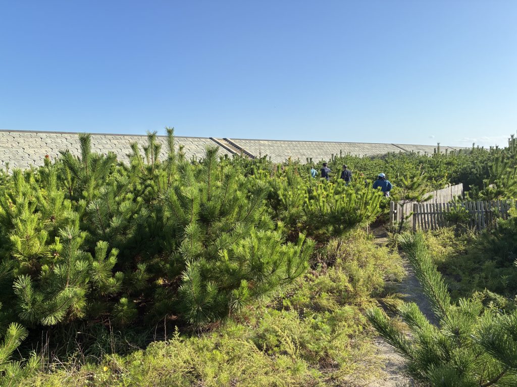 その途中、皆さんが防潮堤へ興味を持たれたため登ってみることに。