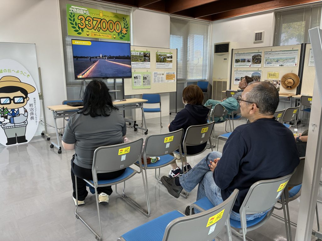 希望の丘に到着後は、震災以降現在までを記録した「復興のあゆみ」のDVD新バージョンを見て谷地沼さんの語り部が始まりました。