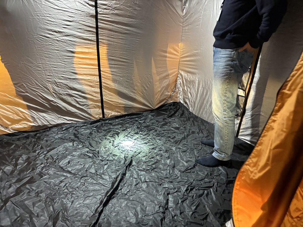 講話の後は、実際に避難所で使われる折りたたみ式パーテーションテントの組立て~片付けの体験です。