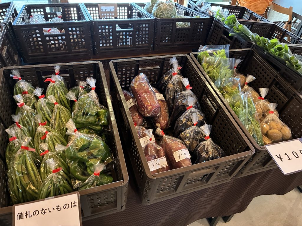本日もなす、ピーマン、きゅうり、さつまいも、長ネギ、ささぎなどの採れたて野菜が入ってきております。