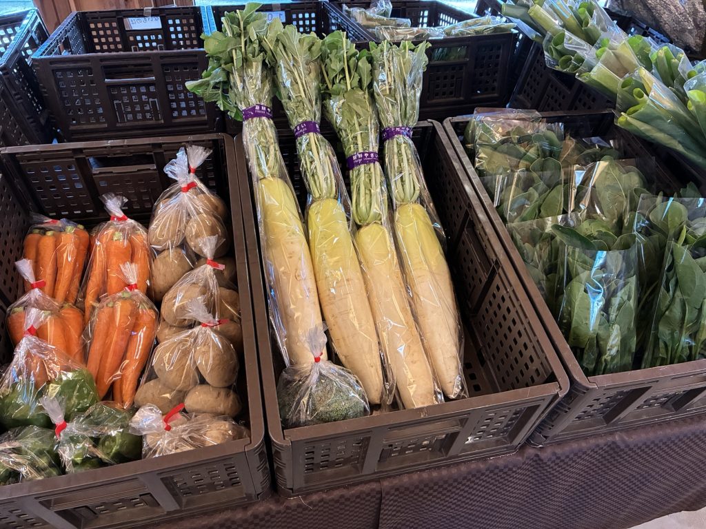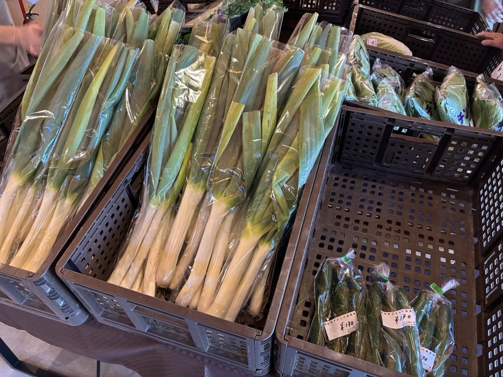 本日もきゅうり、長ネギ、大根、チンゲンサイ、ほうれん草などの採れたて野菜が入ってきております。