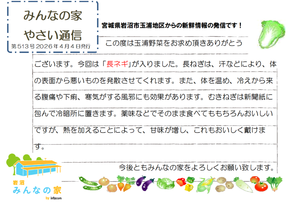 この度はみんなの家の直売野菜をお求めいただきましてありがとうございます。