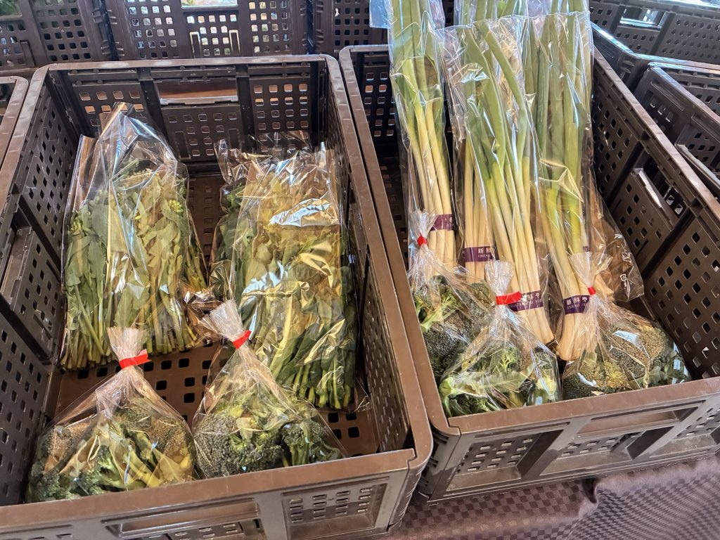 本日もかき菜、ほうれん草、大根、ブロッコリー、ルッコラなどの採れたて野菜が入ってきております。
